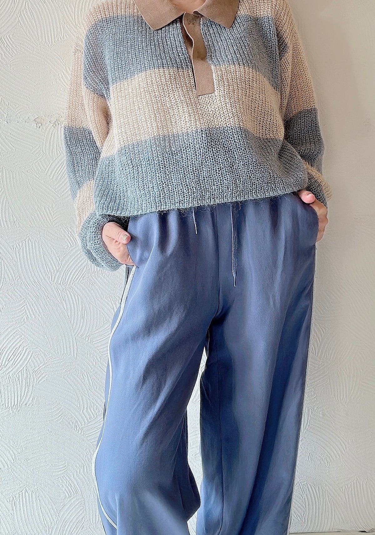 程よく毛足のあるモヘアと、軽さのあるポリエステルテープヤーンを引き揃えた編地。