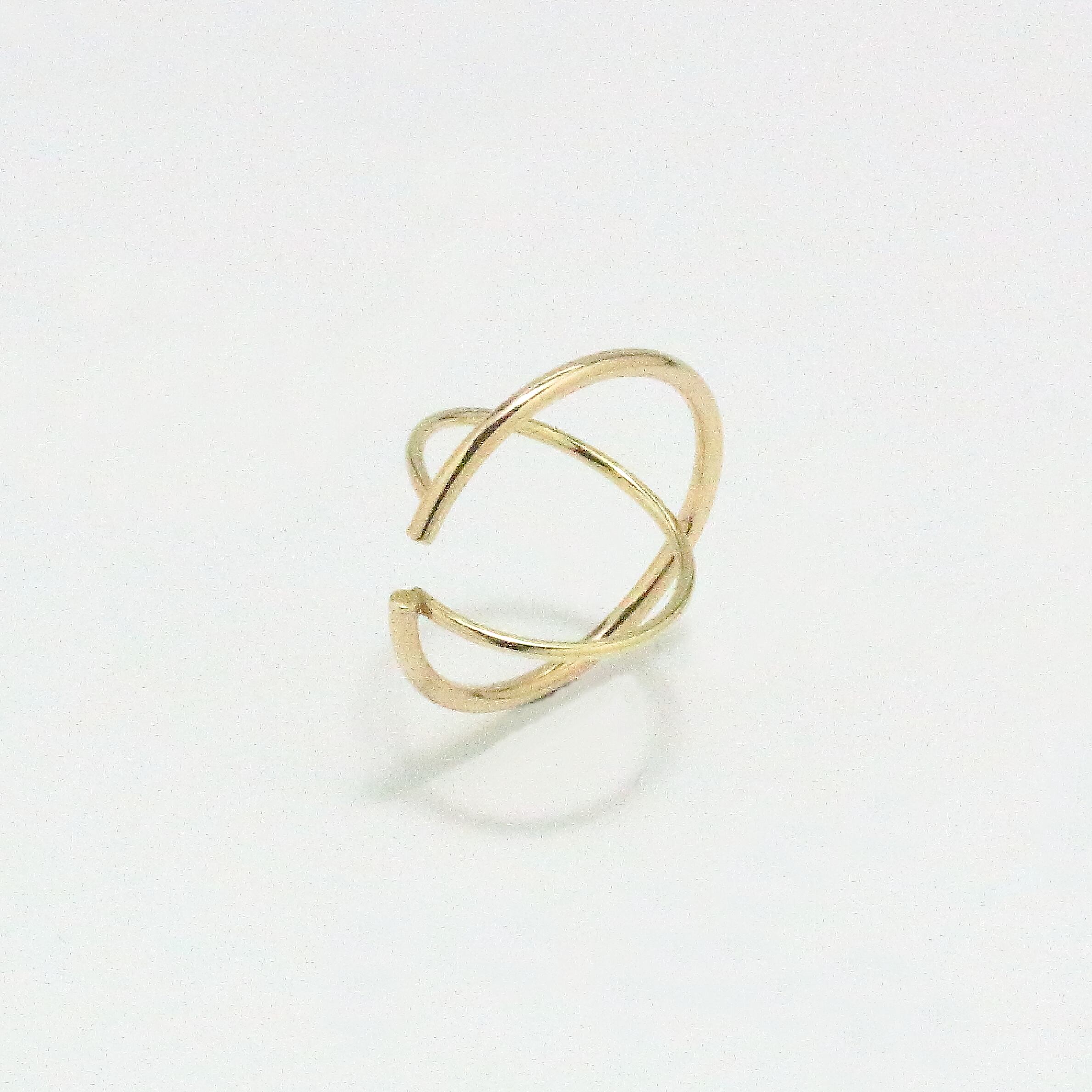 太さの異なる2つのフープラインが交差したデザインで立体的に交差しているため見る角度によって表情が異なります◎