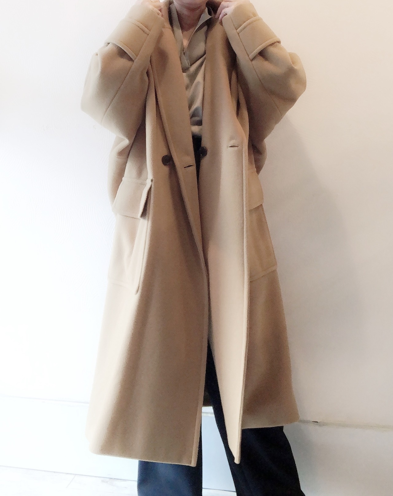 贅沢なシルエットのチェスターコートです。